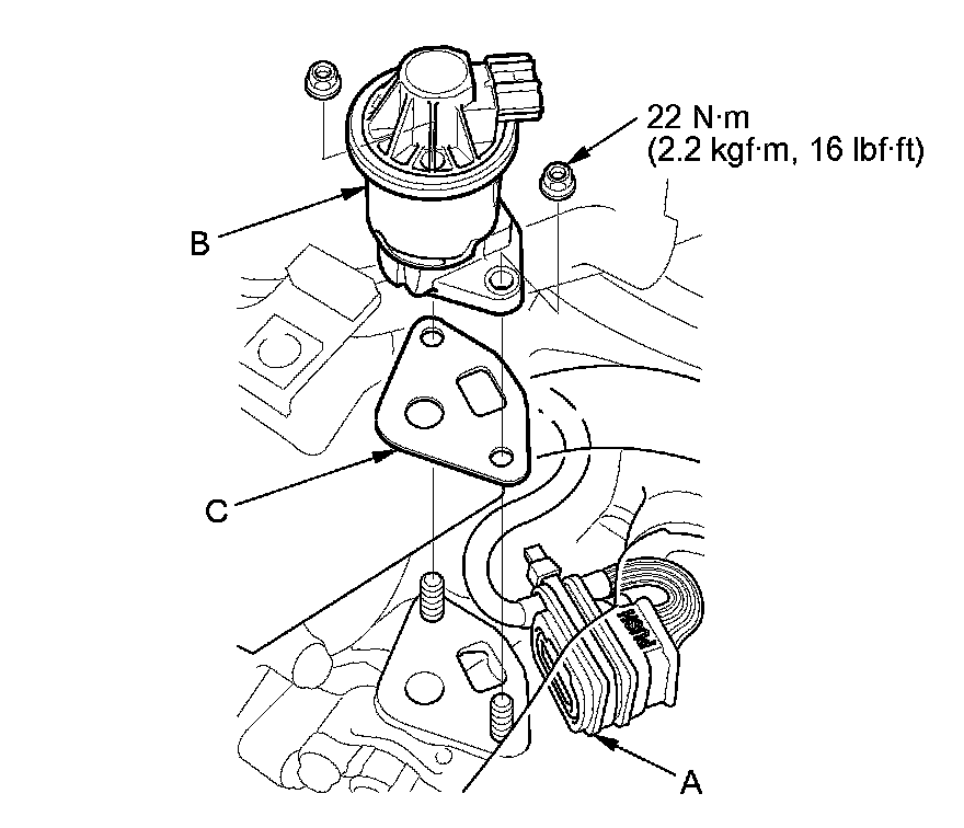 4. Install the parts in the reverse order of removal with a new gasket (C).