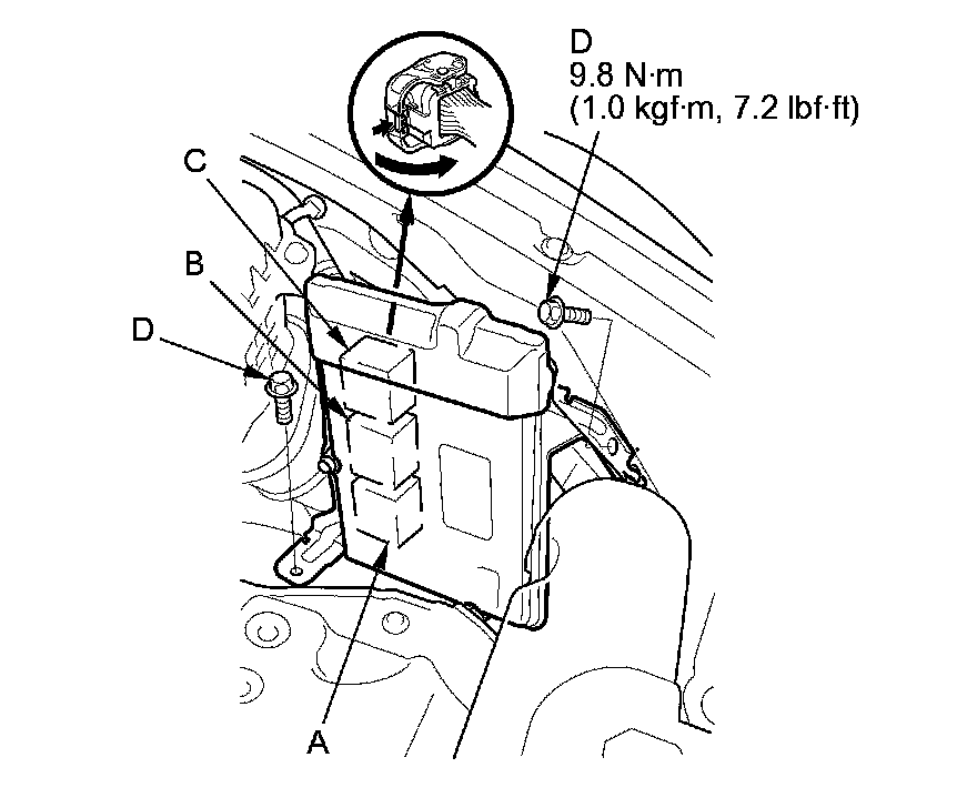 When the PCM senses an abnormality in the input or output system, the D indicator (A) in the gauge control module (B) will usually blink.