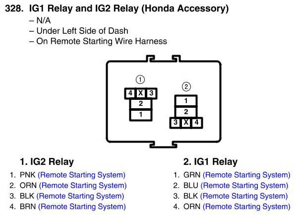 IG1 Relay And IG2 Relay Connector View (Honda Accessory: A/T)