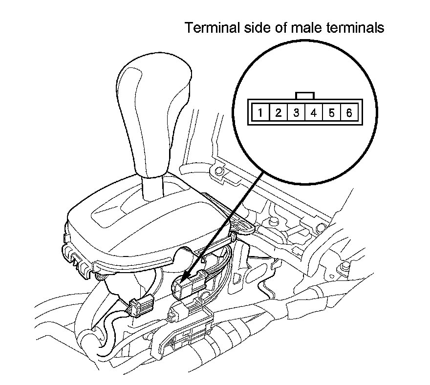 2. A/T gear position indicator panel light/park pin switch 6P connector (A) from the park pin switch (B).