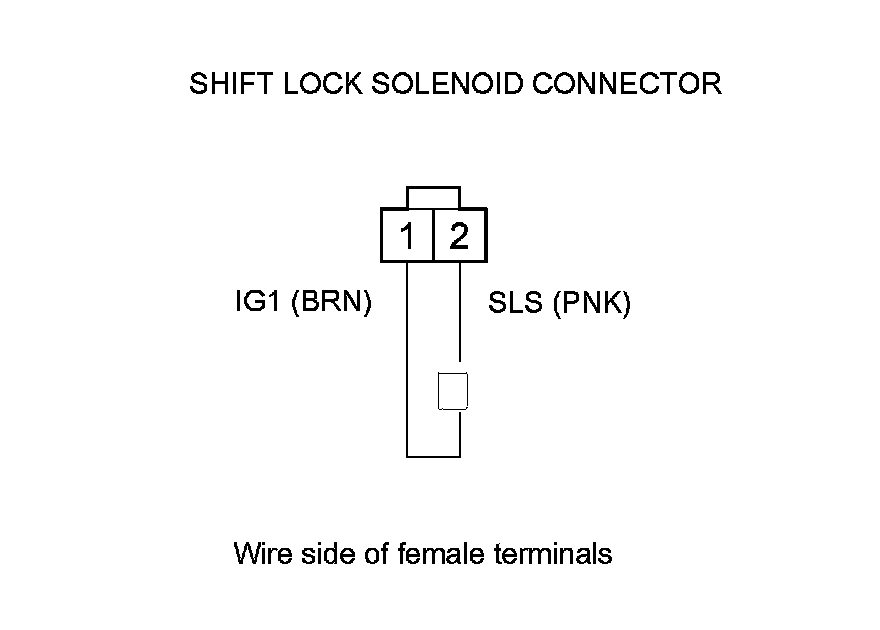 Check for a blown No. 5 (7.5 A) fuse in the driver's under-dash fuse/relay box. If the fuse is OK, repair open in the wire between shift lock solenoid connector terminal No. 1 and the driver's under-dash fuse/relay box.�