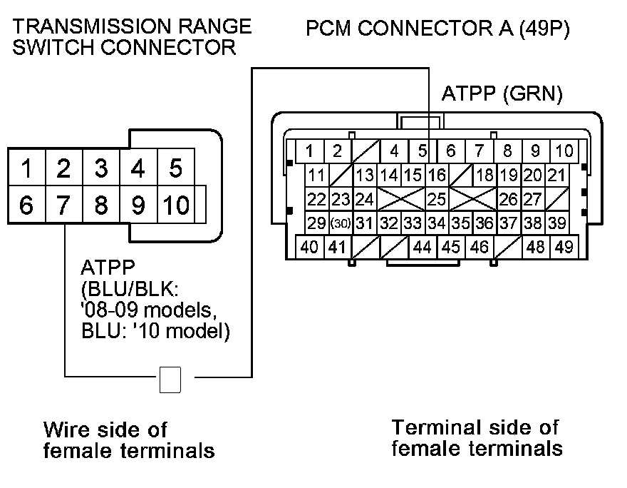 30. Disconnect PCM connector A (49P).