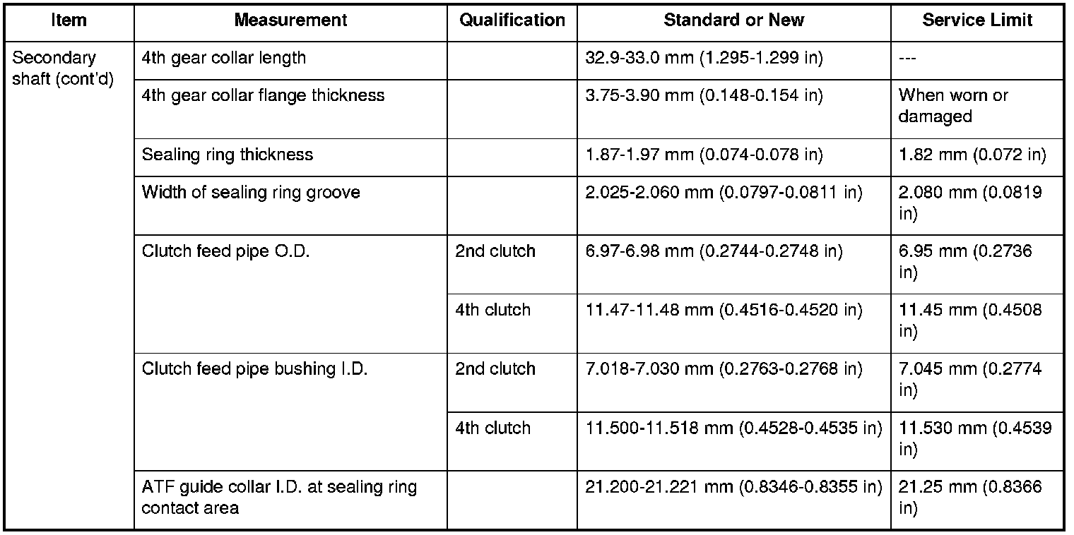 Secondary shaft (cont'd) Specifications
