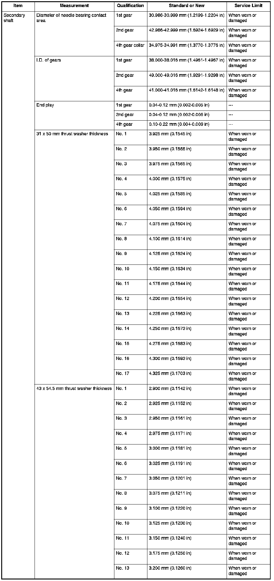 Secondary Shaft Specifications
