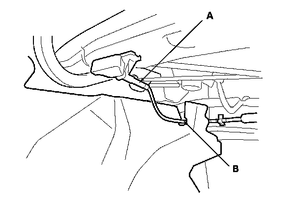 4. Disconnect the seat-back release cable (A) from the seat-back latch (B).