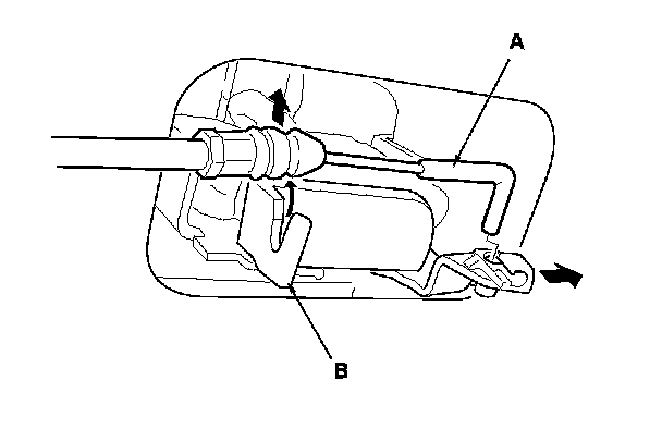 6. Install the release lever/cable in the reverse order of removal, and note these items: