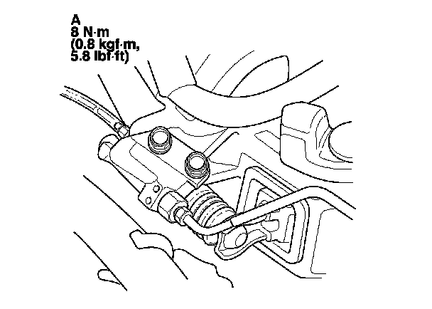 3. Make sure there is an adequate supply of fluid in the reservoir, then slowly push the clutch pedal all the way down. Before releasing the pedal, have an assistant temporarily tighten the bleeder screw. Loosen the bleeder screw, and push the pedal down again. Repeat this step until no more bubbles appear in the clear tube.
