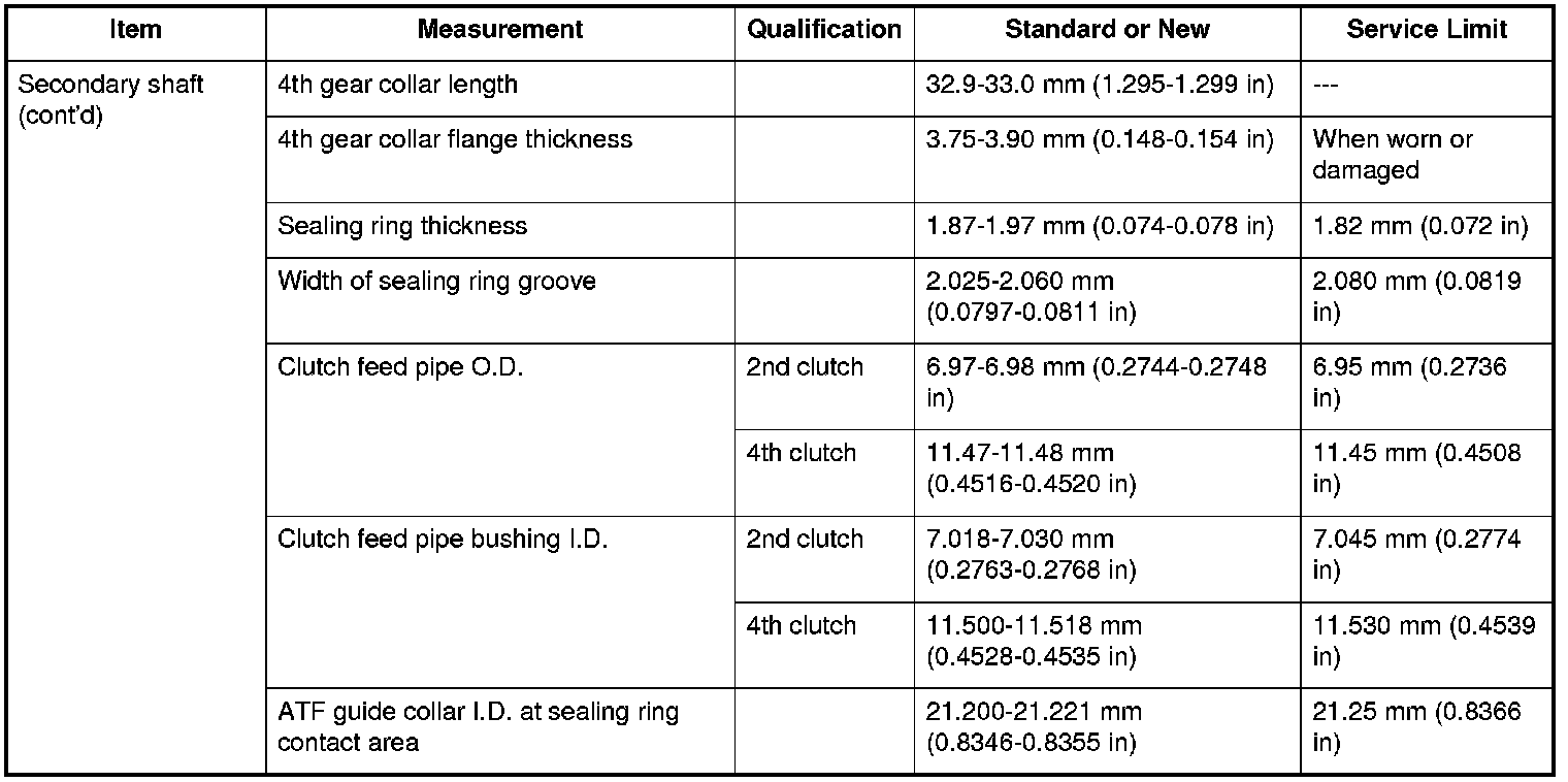 Secondary shaft (cont'd) Specifications