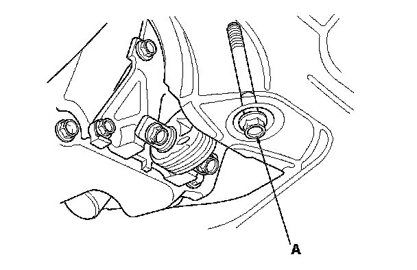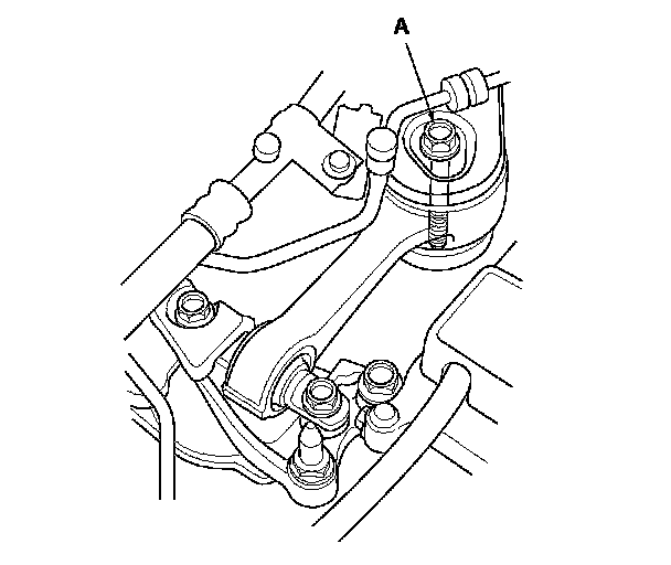 7. Loosen the lower torque rod mounting bolt (A).