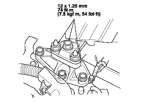 12. Tighten the transmission mounting bolt and nuts.