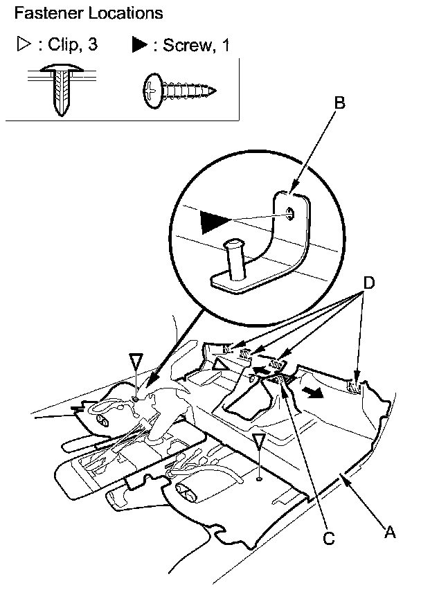 2. Remove the screw, then remove the floor mat holder (B).