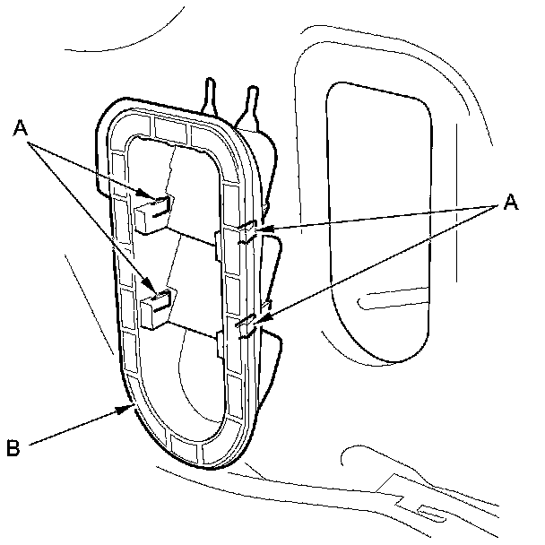 2. Release the hooks (A), then remove the rear air outlet (B).
