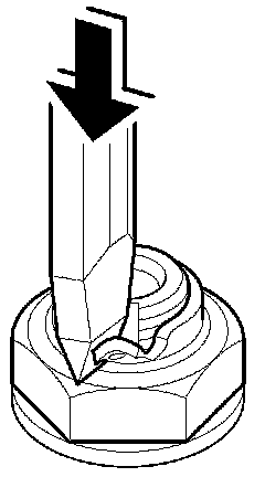 2. Cut the stake of the transfer output shaft locknut using a chisel. Keep all of the chiseled particles out of the transfer output shaft.