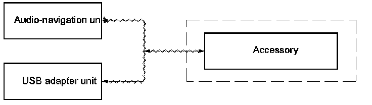 The USB adapter communicates with the audio-navigation unit on the GA-Net bus.
