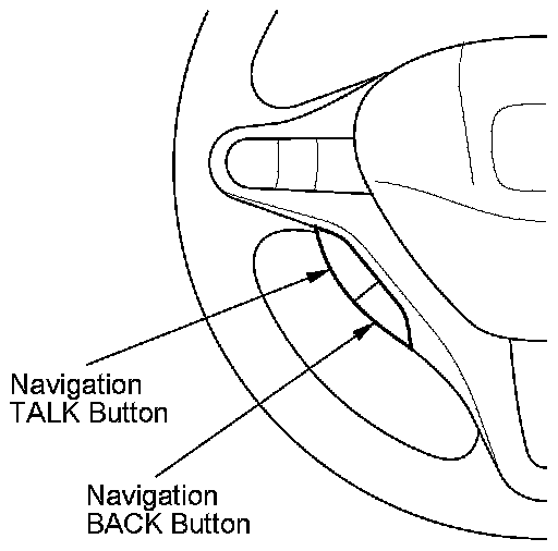 This navigation system also has voice recognition that allows voice control of most of the navigation functions. The Navigation TALK and Navigation BACK buttons on the steering wheel activate the voice control. The voice control also allows control of the audio and climate functions.