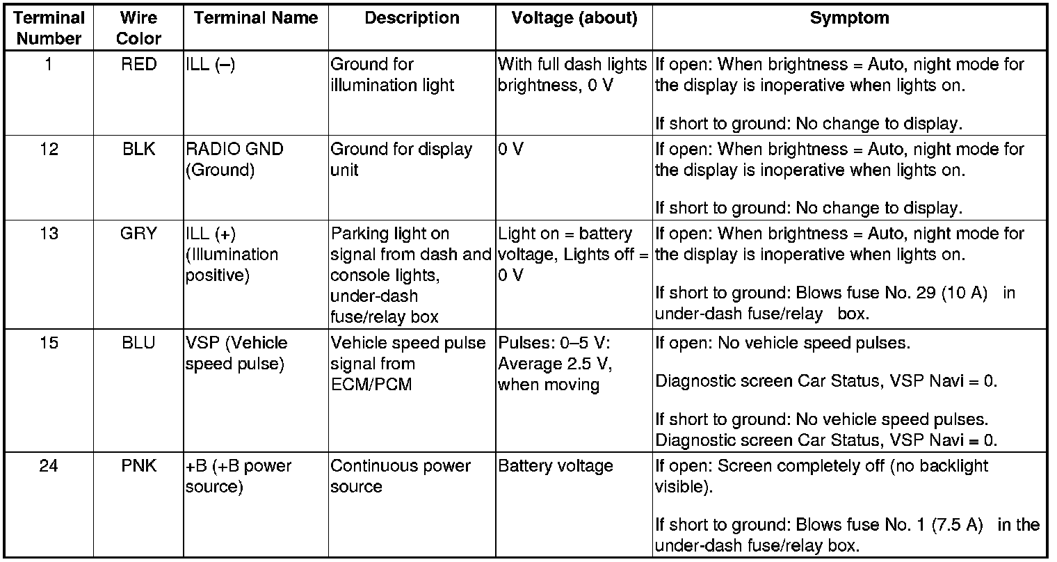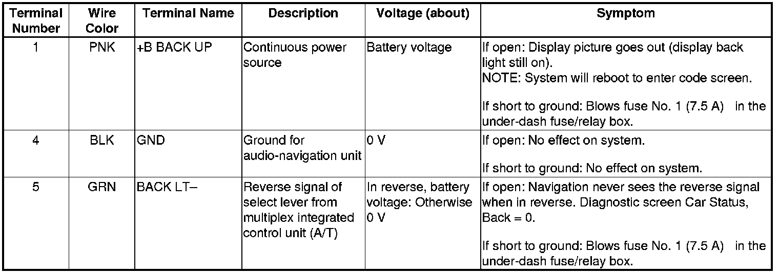 Audio-navigation Unit Inputs and Outputs for Connector D (12P)