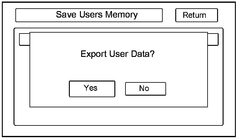 Select this button to move the customer's data from the original audio-navigation unit to the PC card. Select YES on the Export User Data Confirmation screen. The process takes only a couple of seconds. The system stores two files on the card.