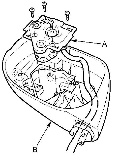 6. Remove the four screws, and separate the power mirror actuator (A) from the housing (B).