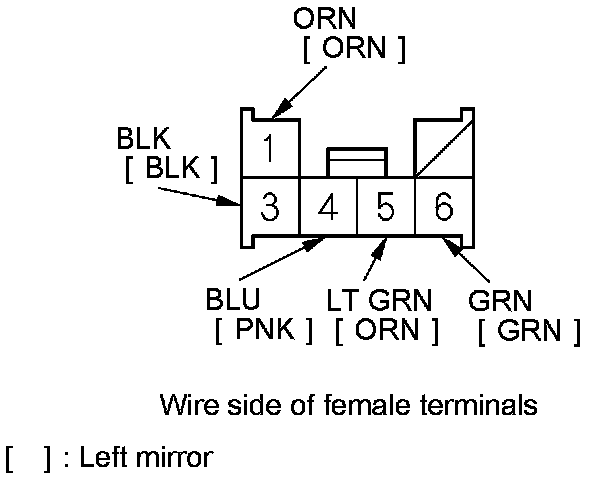 2. Record the power mirror connector terminals location and the wire harness colors.