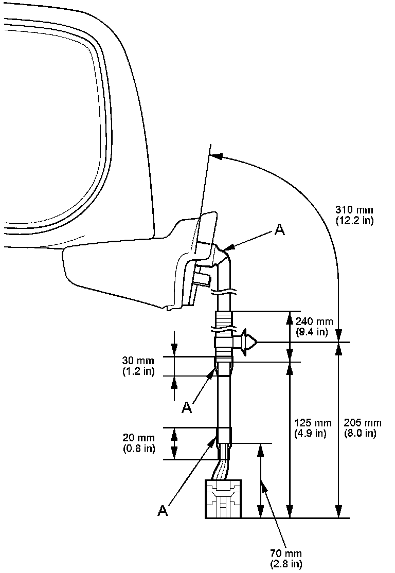3. Apply tape in the areas shown (A), to seal the wire harness.