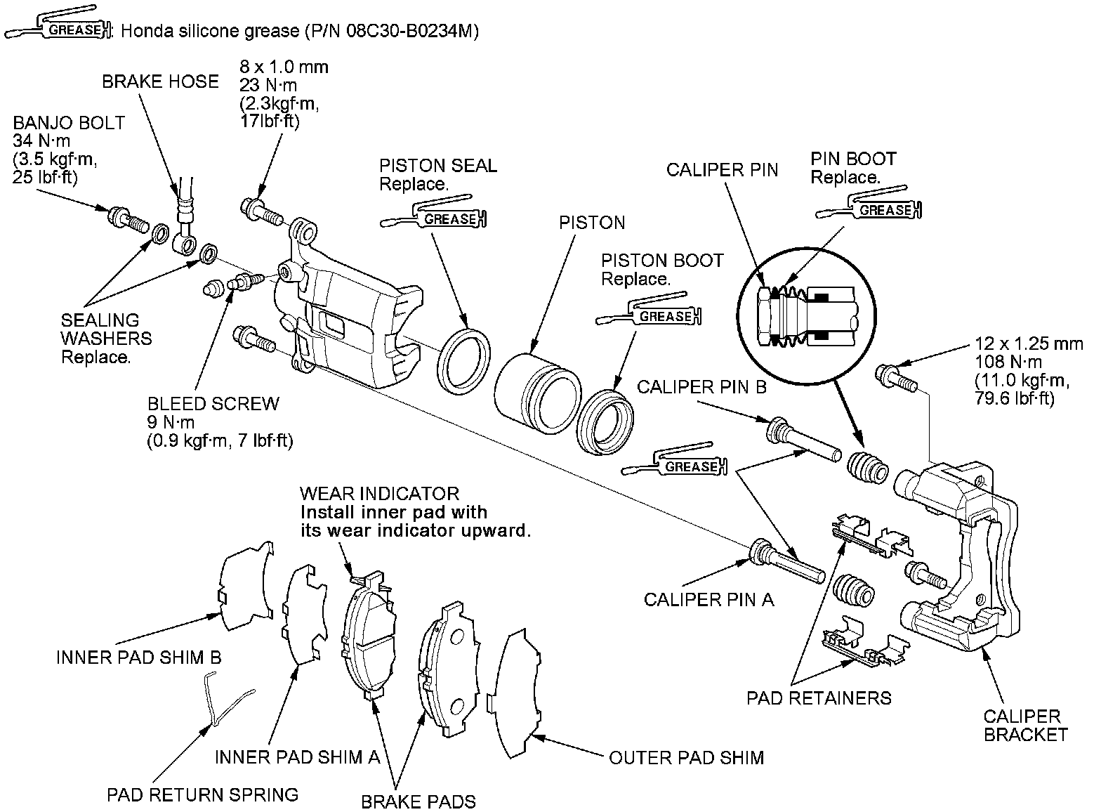 - Use recommended greases in the front caliper set.