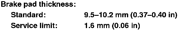 4. If the brake pad thickness of any of the pads is less than the service limit, replace the front brake pads as a set.