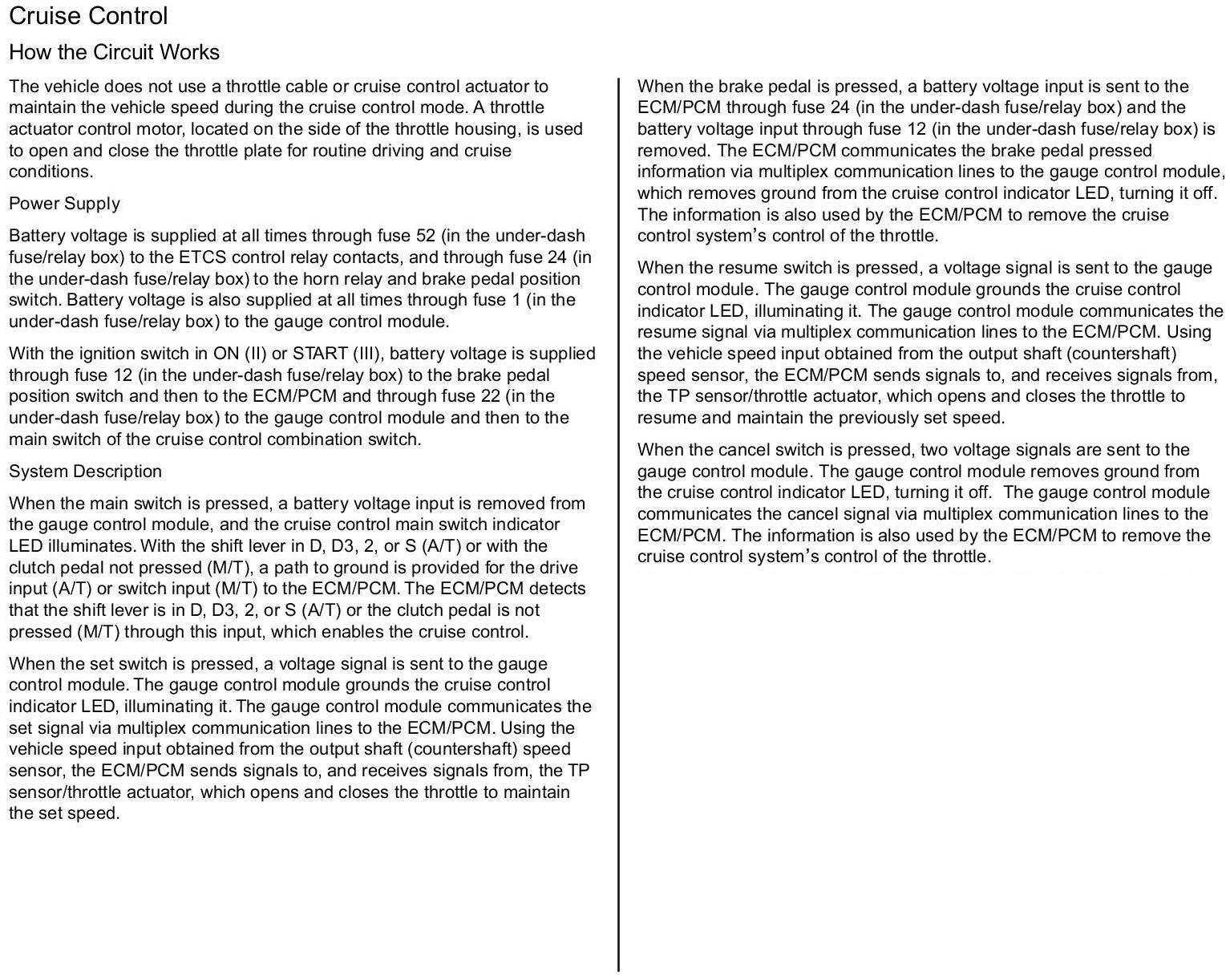 Cruise Control: Description and Operation