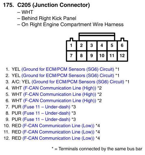 View 175 - C205 (Junction Connector) Connector View