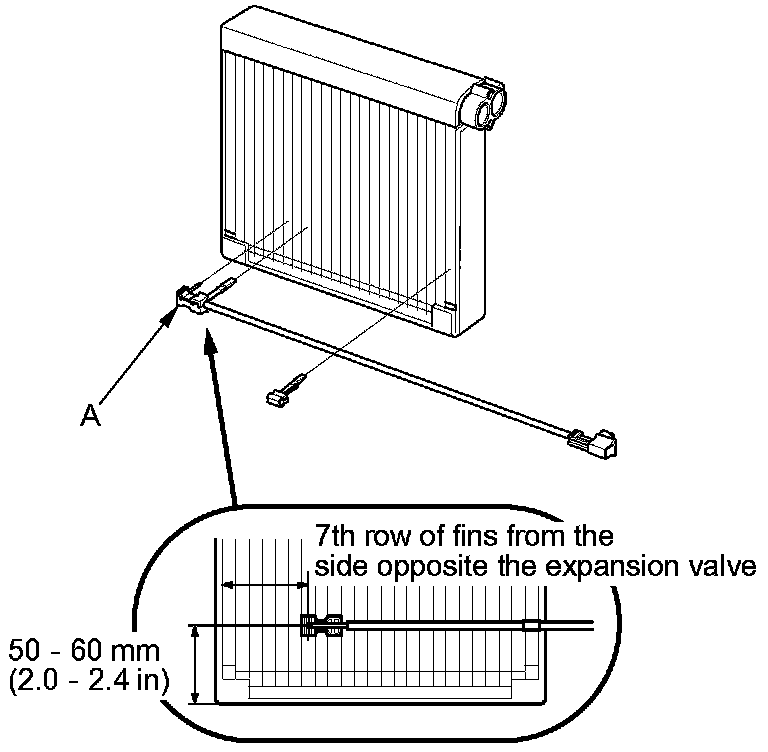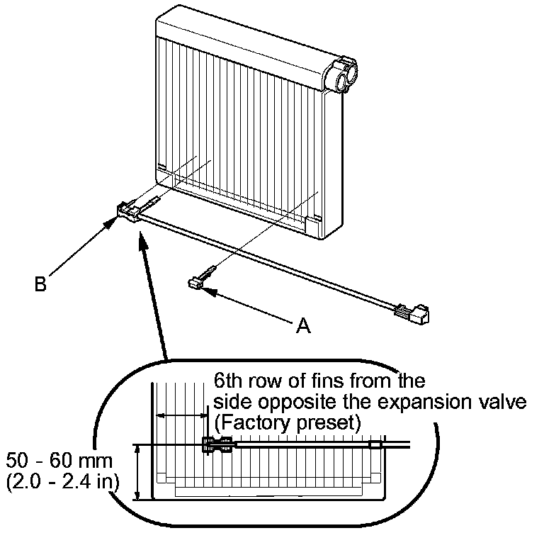 NOTE: At the factory, the evaporator temperature sensor is installed at the 6th row of fins from the side opposite of the expansion valve.