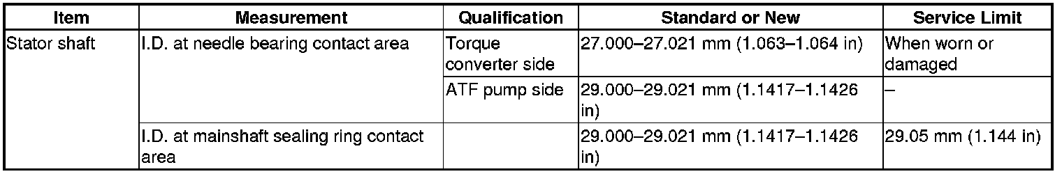 Stator Shaft Specification(s) (A/T)