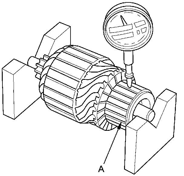 7. Use a digital caliper or dial caliper to check the mica depth (A). If the mica depth is below the service limit, replace the armature.