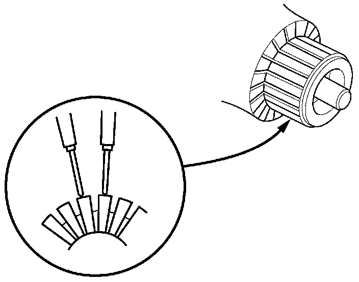 8. Use an ohmmeter to Check for continuity between the segments of the commutator. If there is an open circuit between any of the segments, replace the armature.