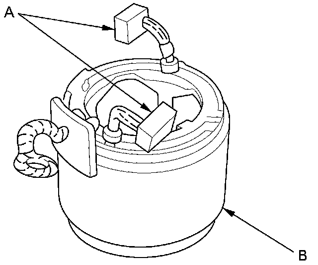 12. Check for continuity between the brushes (A). If there is no continuity, replace the armature housing (B).