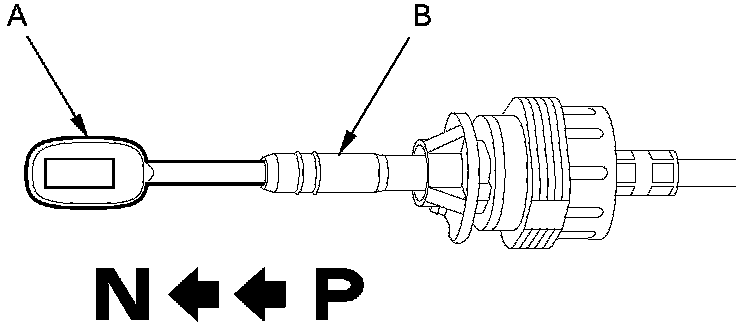5. Push the shift cable (A) until it stops, then release it. Pull the shift cable back two steps so that the shift position is in N. Do not hold the shift cable guide (B) to adjust the shift cable.