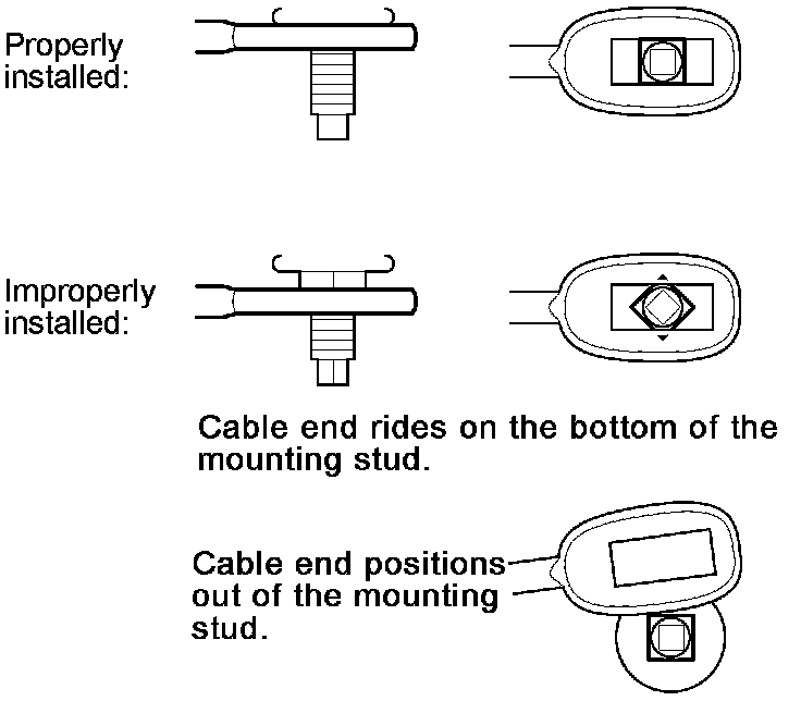 If the cable end rides on the bottom of the mounting stud, rotate the stud and align the square fitting with the hole.