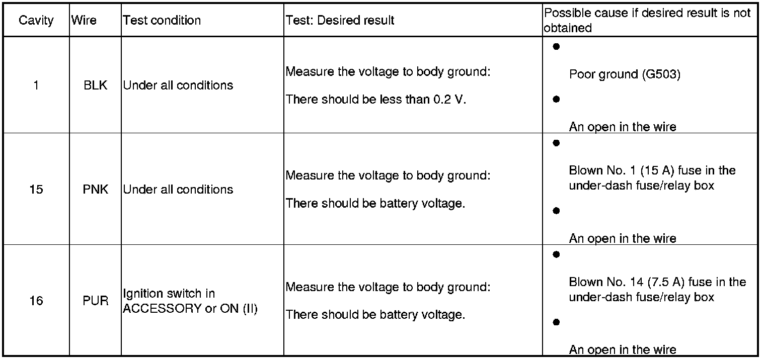 - If the input test proves OK, the HandsFreeLink control unit must be faulty; replace it.