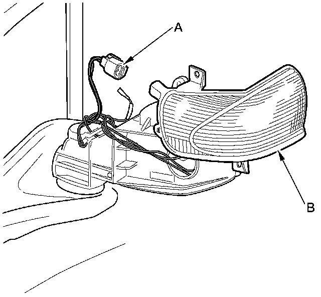 2. Disconnect the 2P connector (A) from the side turn signal light (B) (if equipped).