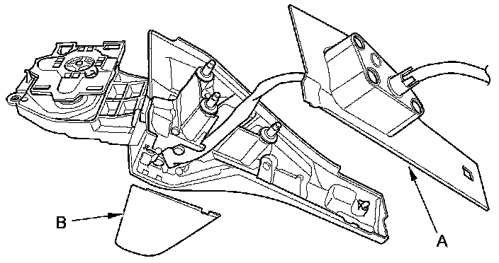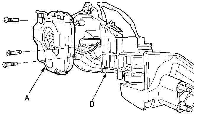 7. Remove the three screws, and separate the power mirror actuator (A) from the housing (B).