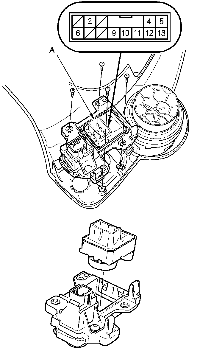 2. Disconnect the 13P connector from the power mirror switch (A).