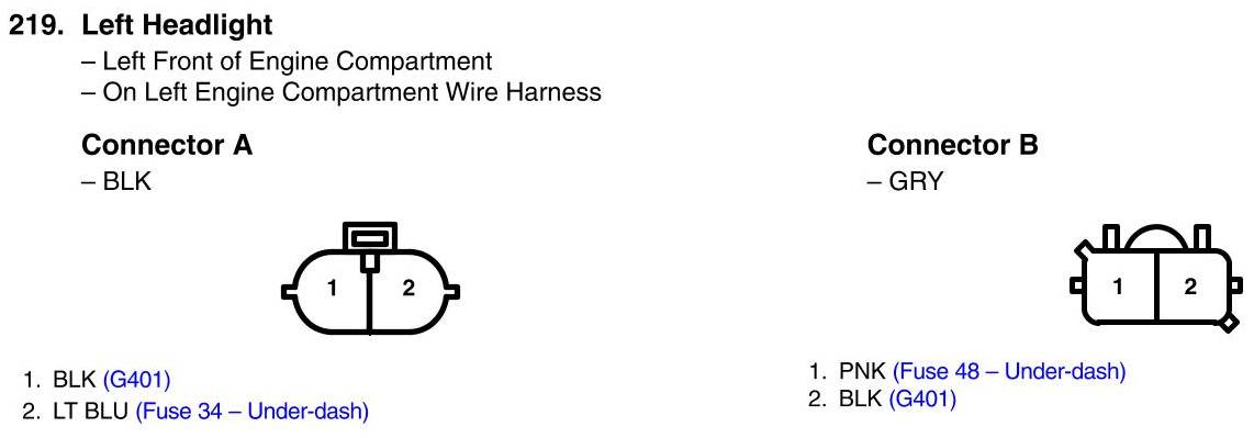 View 219 - Left Headlight Connector View