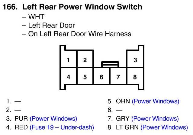 Left Rear Power Window Switch Connector View