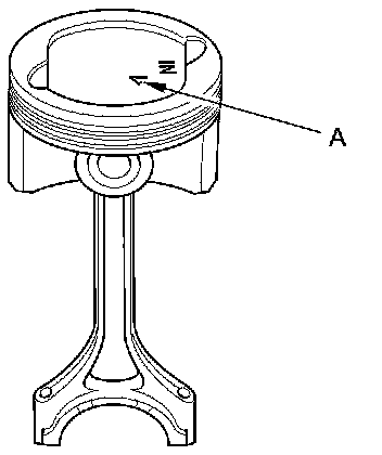 3. Position the piston/connecting rod assembly with the arrow (A) facing the cam chain side of the engine block.