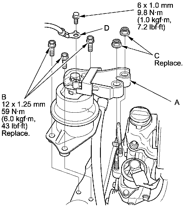 NOTE: Use new gaskets (C) and new self-locking nuts (D).