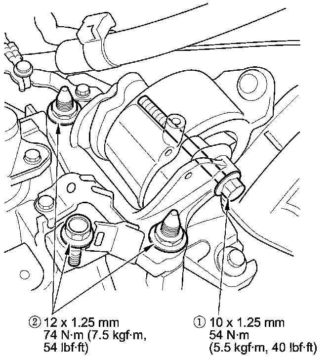 27. Tighten the transmission mount mounting bolts and nuts in the numbered sequence shown.
