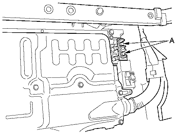 Slide the protector (A) in the direction of the arrow. Push the tab (B), then raise the lever (C). Remove the IMA motor power cable (D) from the motor stator.