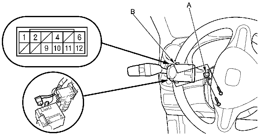 2. Disconnect the 12P connector (A) from the combination light switch (B).