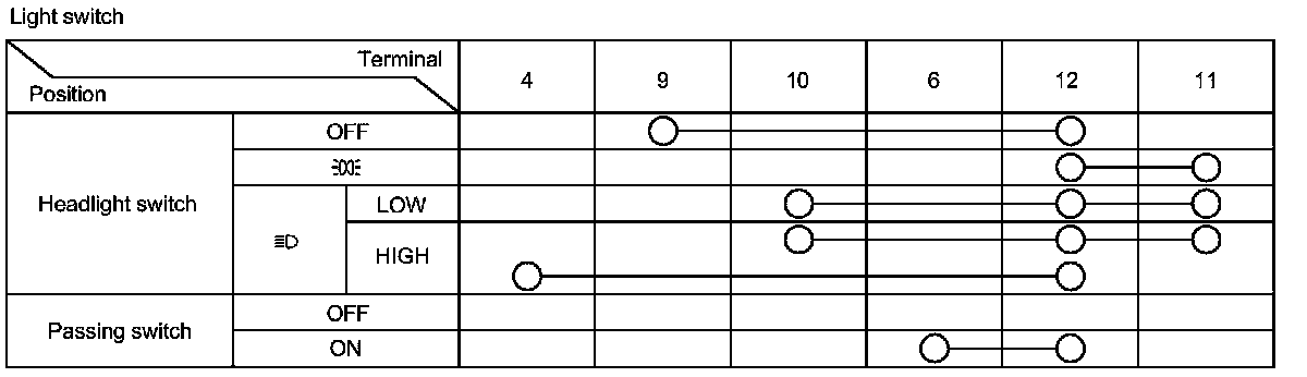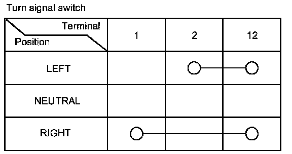 - If the terminals look OK, check for continuity between the terminals in each switch position according to the tables.