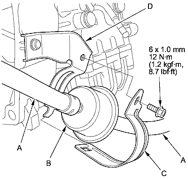 6. Secure the new CVTF filter on its bracket (D) with the CVTF filter holder and the bolt.