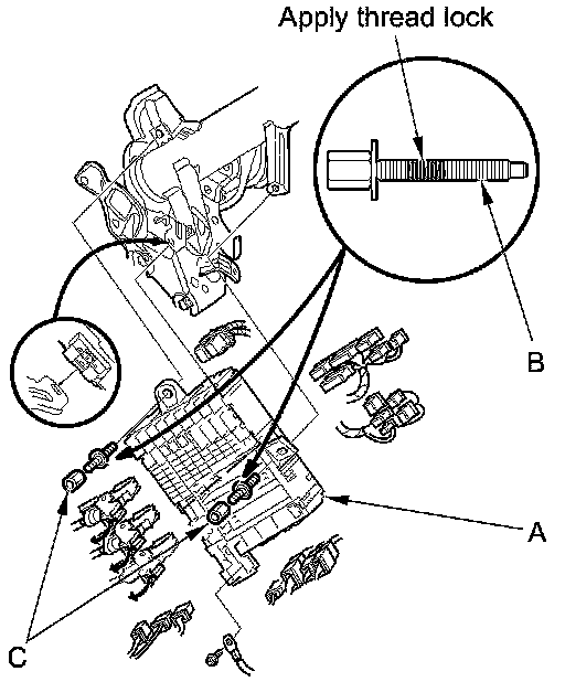 4. Release the lock on the hatch release actuator relay holder (B), then slide it forward to release it from the under-dash fuse/relay box.