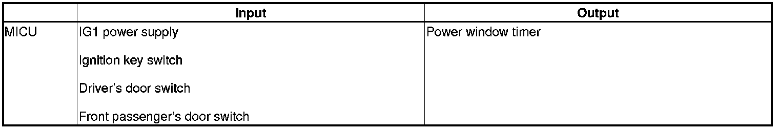 The MICU control of the power window key-off operation is based on inputs from each switch.
